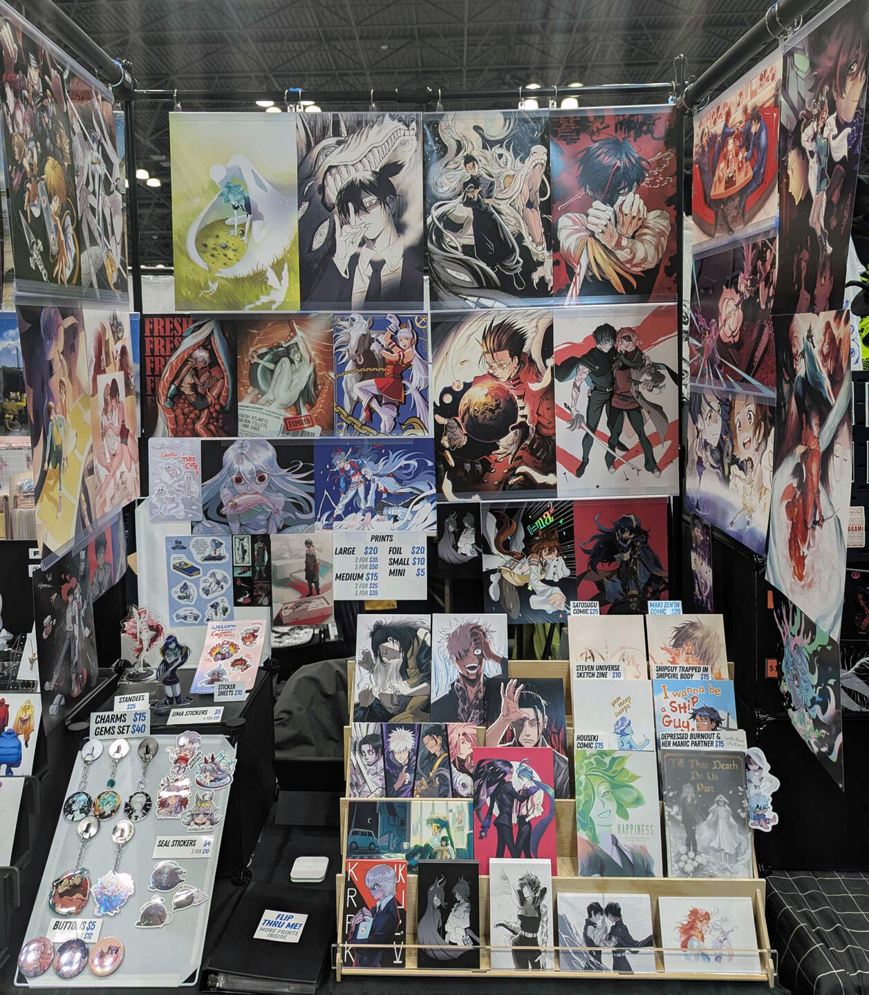 We use Procreate, Clip Studio Paint, and Photoshop to create prints. They range from postcard to poster sizes.
